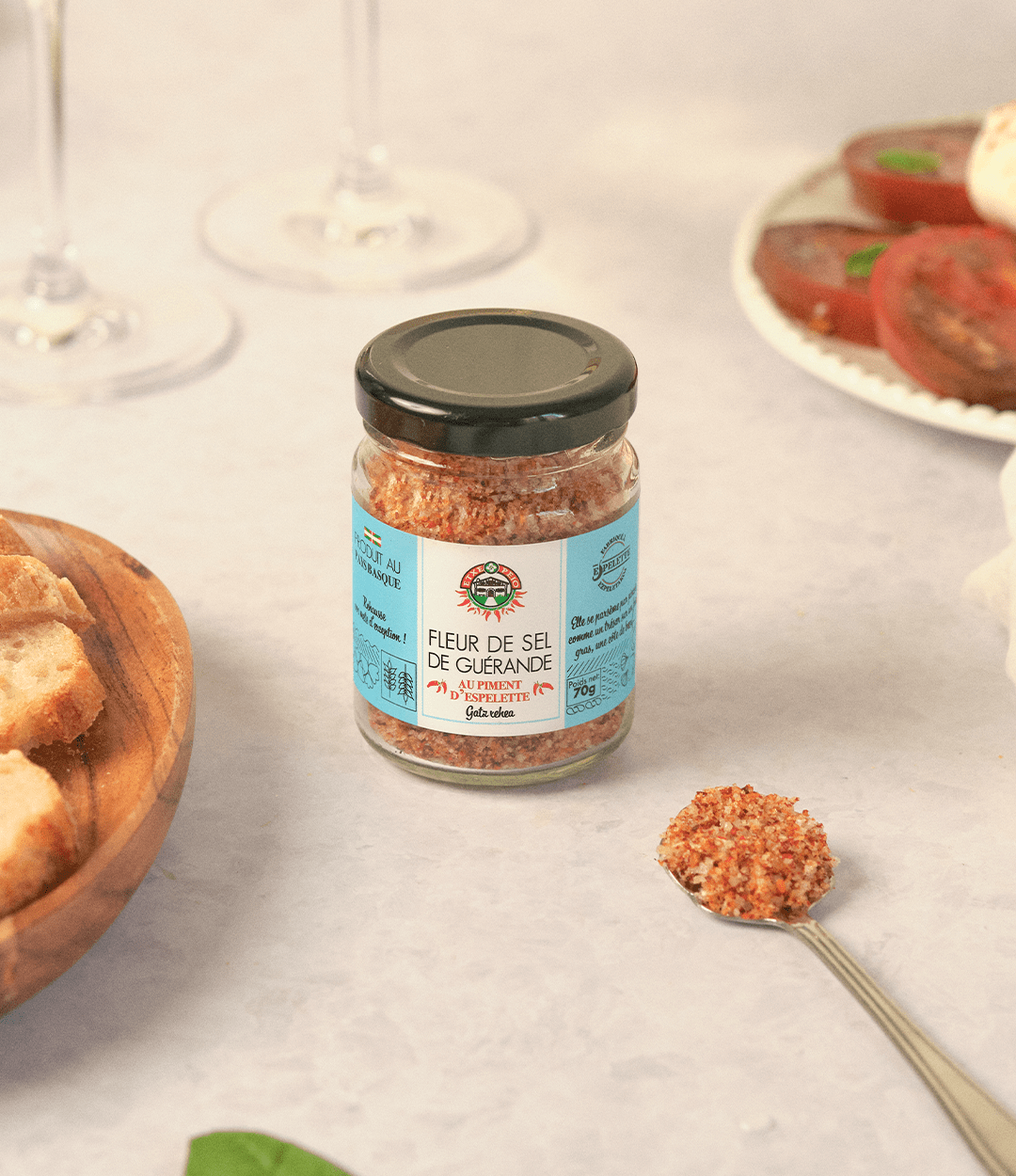- Fleur de sel de Guérande au piment d'Espelette – L’alliance parfaite entre la délicatesse du sel et le caractère du piment.